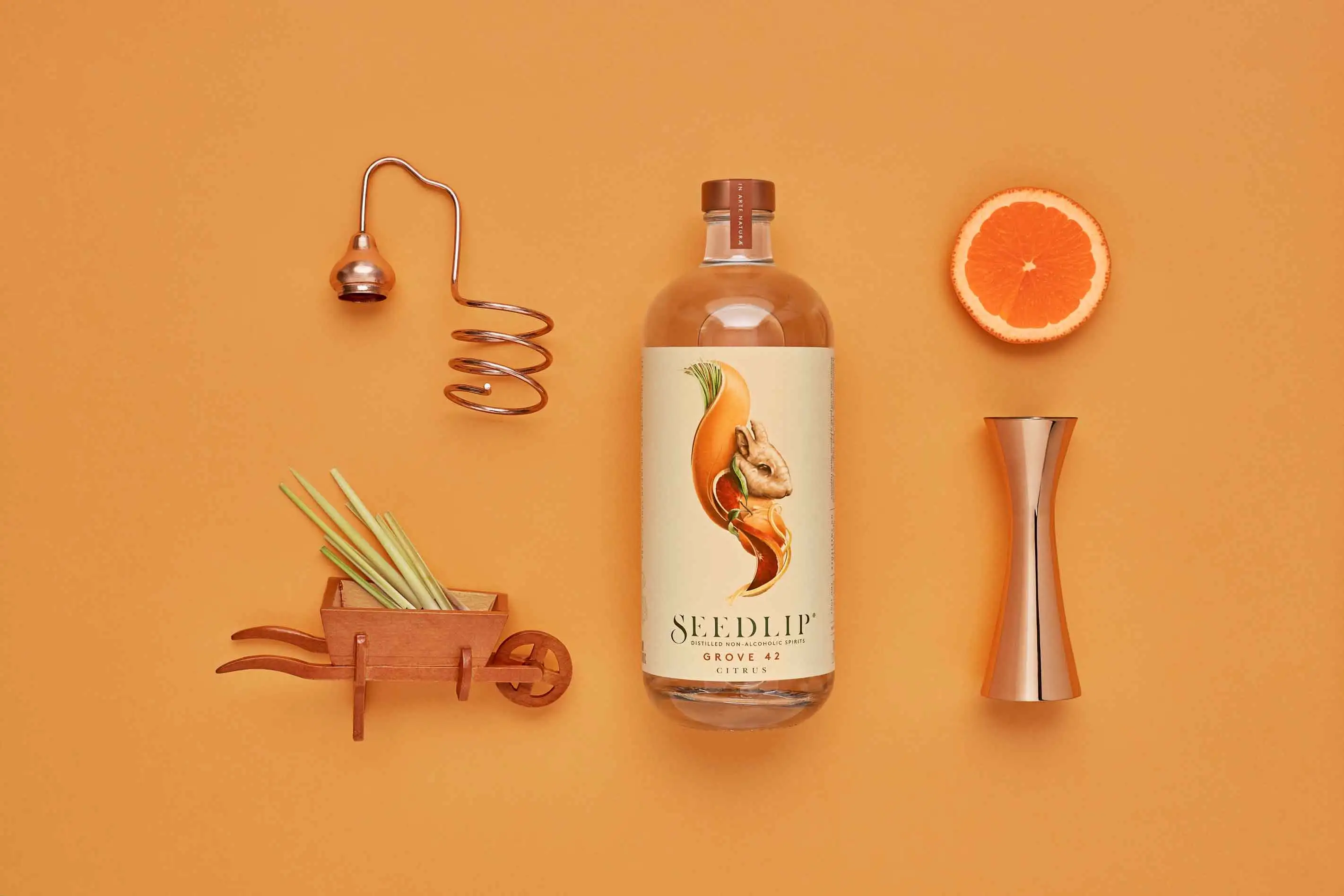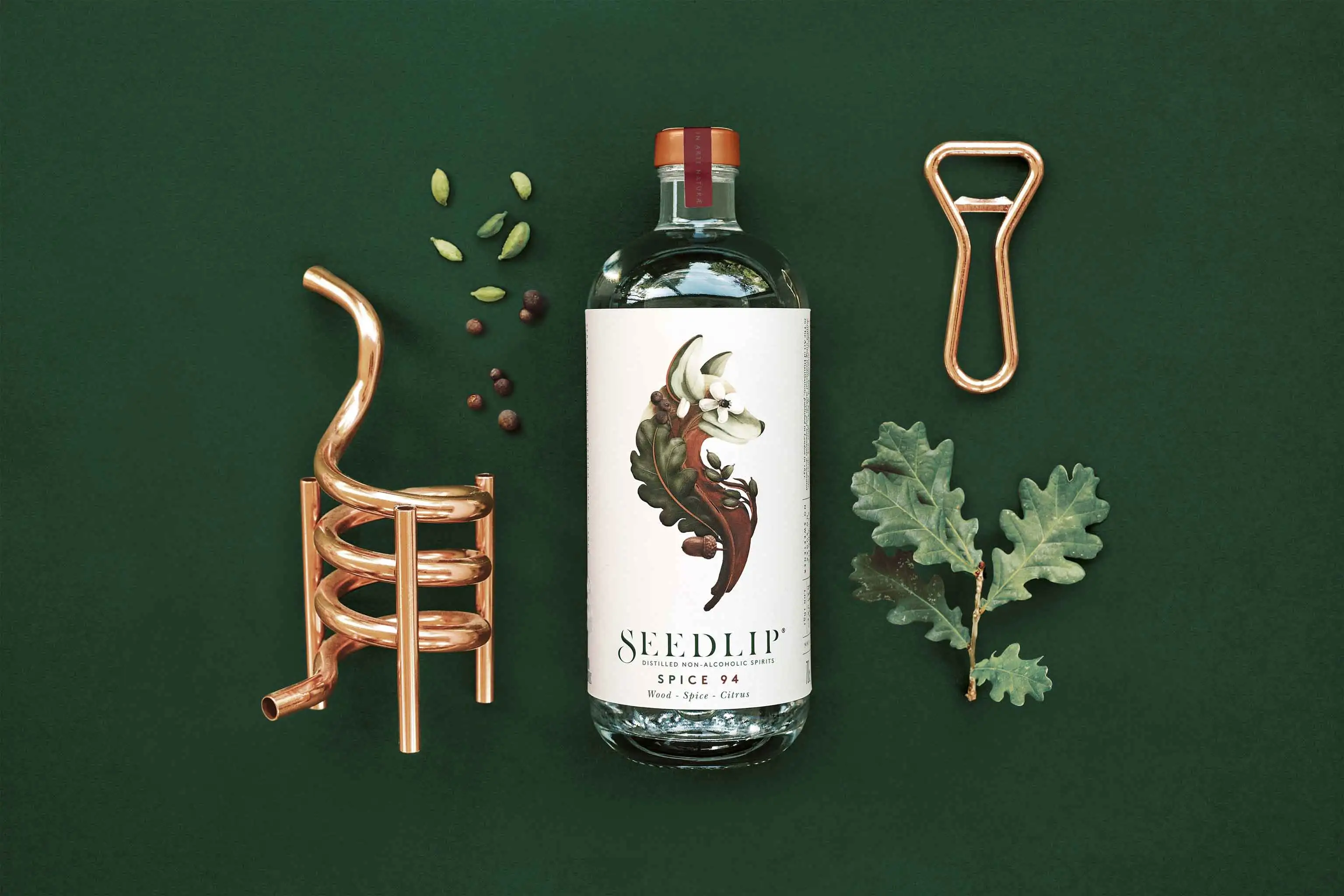 Ben Branson begann alte Apothekerbücher über Heilkräuter und Gewürze sowie deren Verarbeitung zu studieren. Er lernte alles über alkoholische und nichtalkoholische Destillation, versuchte, Pflanzen aus dem eigenen Garten einzuweichen und brannte das Mazerat auf einer kleinen Kupferbrennblase. 2014 verliess er die Agentur, in der er Getränkemarken betreute, um seine eigene aufzubauen. Es sollte ein eigenständiges völlig neues Produkt sein und weit abseits von Wein, Bier, Spirituosen und Softdrinks stehen. In Zusammenarbeit mit Destillateuren, Gärtnern und Historikern entwickelte er den Herstellungsprozess für Seedlip: Die Botanicals werden einzeln eingweicht, jeder Sud wird destilliert und verdichtet, und dann nach Spezialrezept mit anderen Konzentraten gemischt. In unzähligen Versuchen erstellte man das Aromenprofil für ein Produkt, dann auch für ein zweites. Das Ergebnis sind Essenzen, die sich hervorragend zum mixen von Cocktails eignen: Spice 94 ist elegant aromatisch, erdig, holzig; und man riecht Lebkuchen. Garden 108 hingegen duftet frisch floral nach Kräutern und Gras. Die Zutaten dafür, hunderte Kilogramm Erbsen, Kräuter und Heu, kommen vom Bauernhof der Familie Branson, der Name, Seedlip, stammt von den Samenkörben, in denen das Saatgut für die Aussaat transportiert wird.