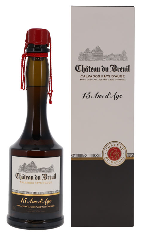 Chateau du Breuil 15 ans d'age ist ein hochwertiger und aromatischer Calvados für dessen Herstellung verschiedene Apfelbrände mit einer Reifezeit von mindestens 15 Jahren vermählt werden, zudem ein kleiner Teil eines jüngeren Brandes. Im Eichenfass gereift.