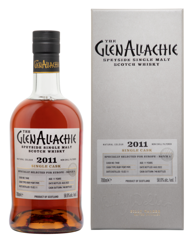CHF 138.00Glenallachie Single Cask 7448 Ruby Port Pipe 11 Years 2011 Speyside Single Malt Scotch Whisky 2022 58.6° 70cl