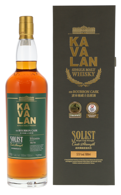 Wie der Name vermuten lässt handelt es sich bei der 'Solist'-Reihe von Kavalan um Einzelfass-Abfüllungen. Hier um einen speziell ausgesuchten Ex-Bourbon Cask. Die streng limitierte Sonderedition hat 57.8% Vol. also Fassstärke.