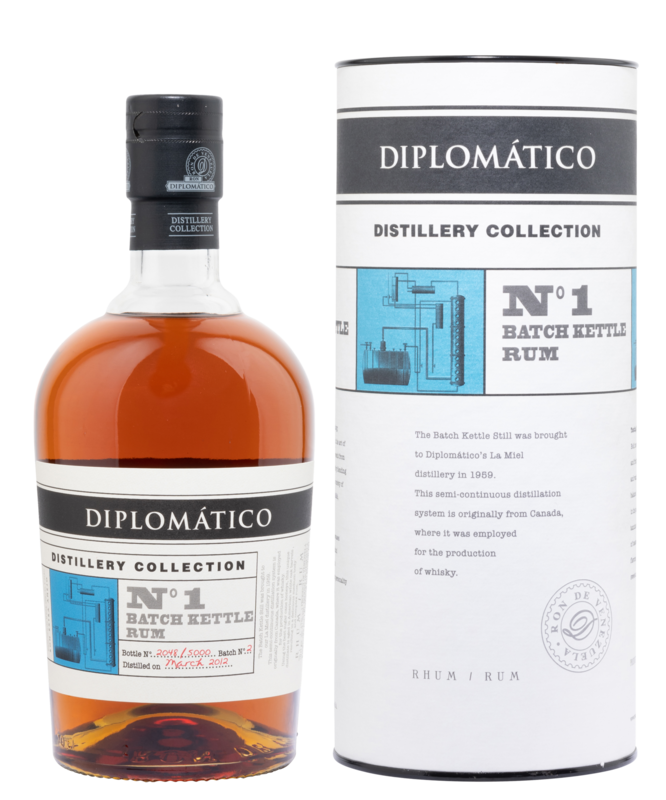 Der Batch-Kessel wrude 1959 in die La Miel-Brennerei von Diplomatico gebracht. Diese diskontinuierliche Destillationssystem kommt ursprünglich aus Kanada, wo es für die Herstellung von Whisky gebraucht wurde. Der Batch Kettle Rum wird hauptsächlich aus Zuckerrohrhonig hergestellt und anschliessend reift er in Ex-Boubron-Fässern.