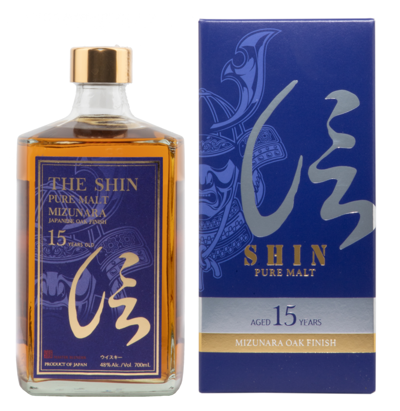 Der Shin Pure Malt Mizunara Oak Finish der Shinobu Distillery zeigt in der Nase Aromen von Sandelholz, Eiche, Heidelbeere und Zimt. Am Gaumen sanft, mit Würznoten und einem langen Abgang.