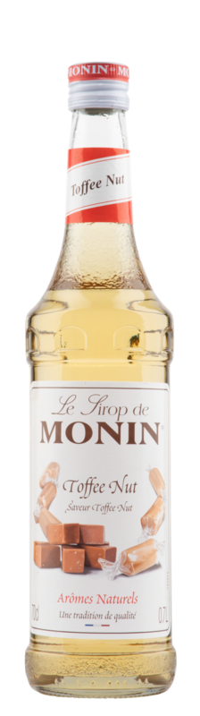 Eine weitere Spezialität von Monin-Sirup. Eine sinnliche Verbindung von Toffee und Macadamianuss. Als Toffe versteht sich eine Mischung von Karamel und Butter, in der Schweiz auch in Verbindung mit Rahm als Karamelbonbon oder Rahmtäfeli. Sehr beliebt im Kaffee oder als Milch-Shake.