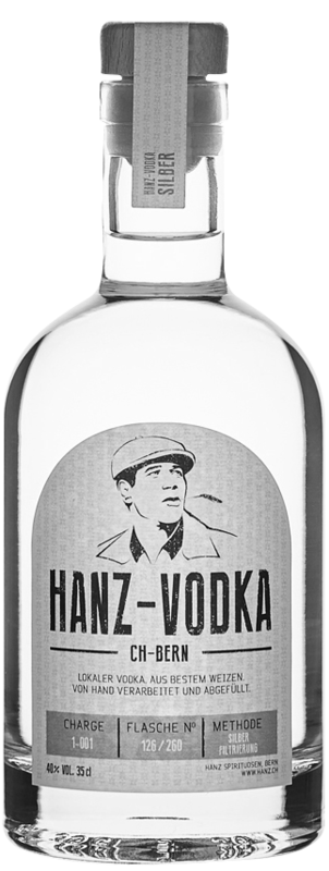 Der Hanz-Voda wird klassisch durch Aktivkohle filtriert. Er wird Lokal in Bern hergestellt und in bewährter Handarbeit.