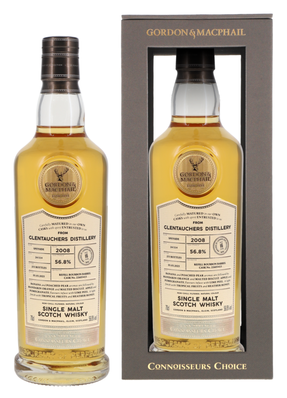 Destilliert 2008 in der Glentauchers Distillery, reifte dieser Single Malt 16 Jahre in sorgfältig ausgewählten Eichenfässern. Gordon & MacPhail füllten ihn 2025 in Fassstärke mit 56.8% Vol. ab, um seine natürliche Intensität zu bewahren.