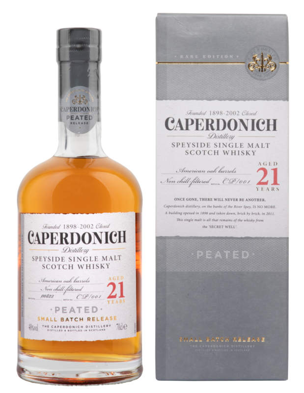 Die Basis des Caperdonich 21 Year Old Peated Single Malt bildet getorftes schottisches Gerstenmalz. Nach der Destillation reifte der Whisky 21 Jahre in Fässern aus amerikanischer Eiche, bevor er in sehr limitierter Stückzahl abgefüllt wurde.